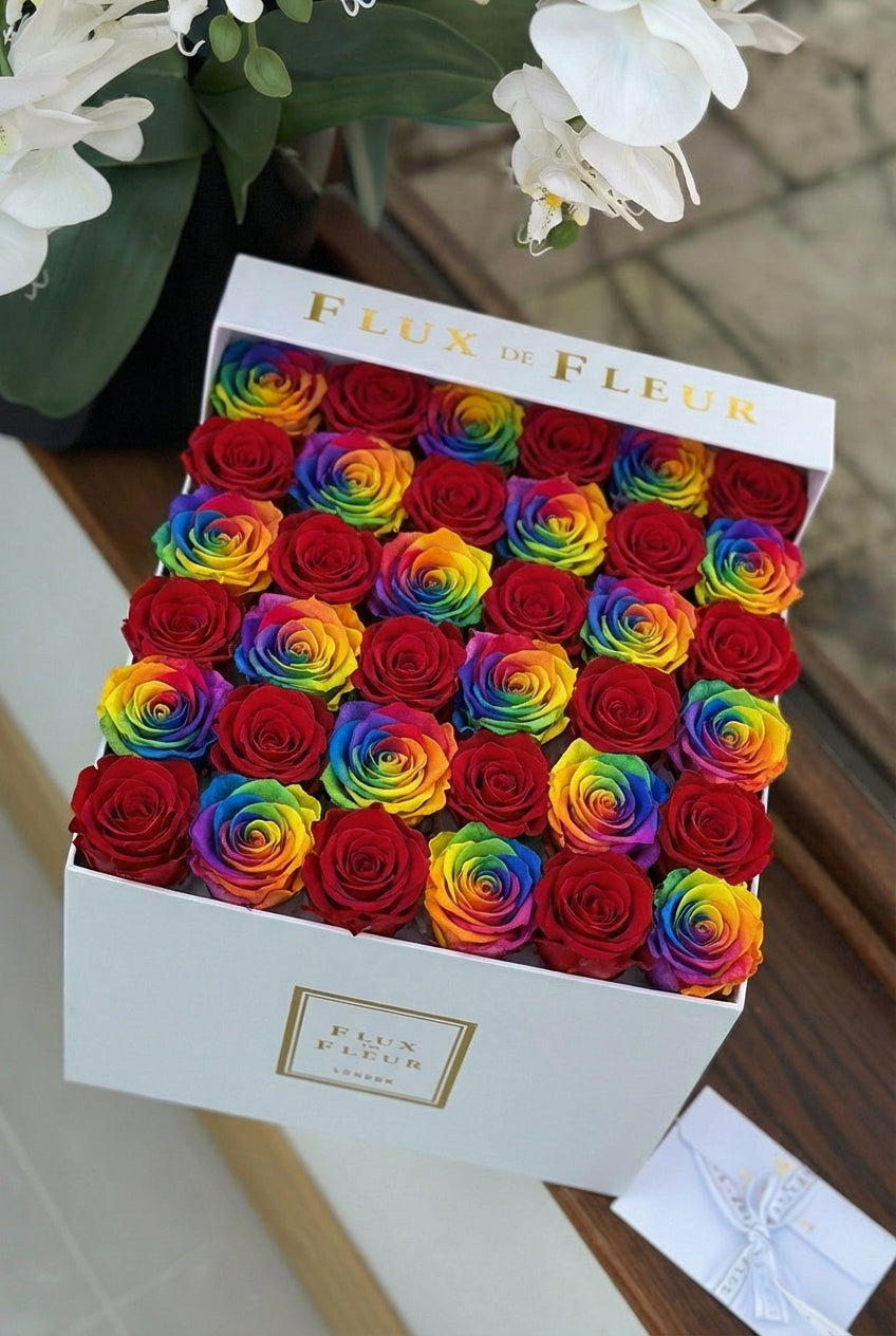 Due to the artisanal preservation and colouring process, darker rose tones may subtly transfer onto lighter shades when placed side by side.